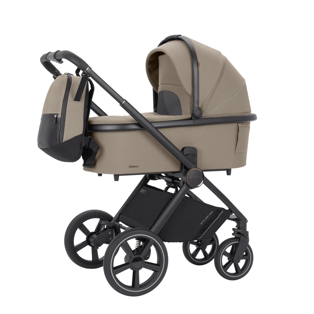 У модели Ultimo есть просторная люлька с эргономичной ручкой для переноски, большое посадочное сиденье, поворотные одинарные колеса, а также легкость в сборке для транспортировки или хранения и возможность установки прогулочного блока по ходу движения и против него.